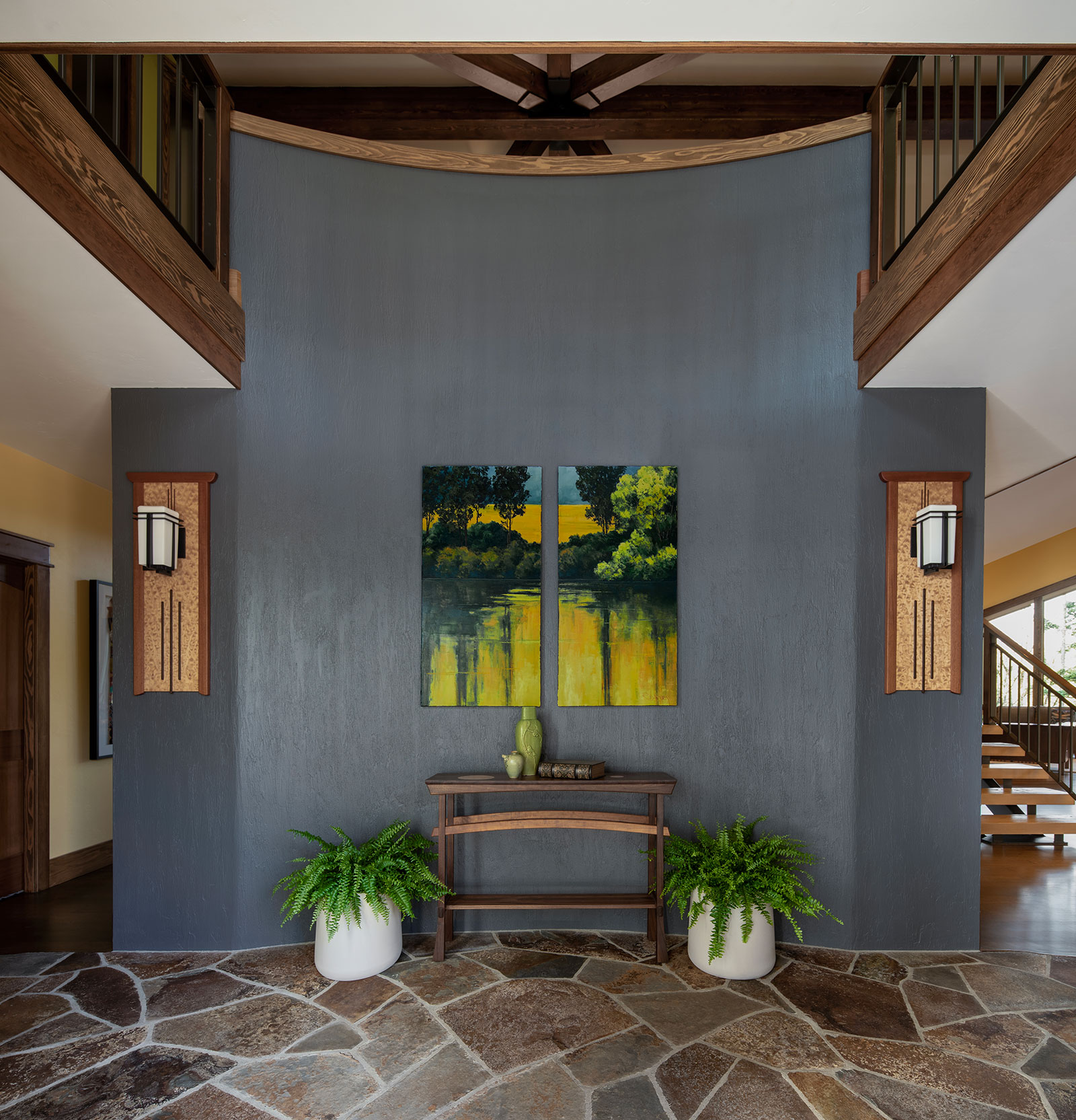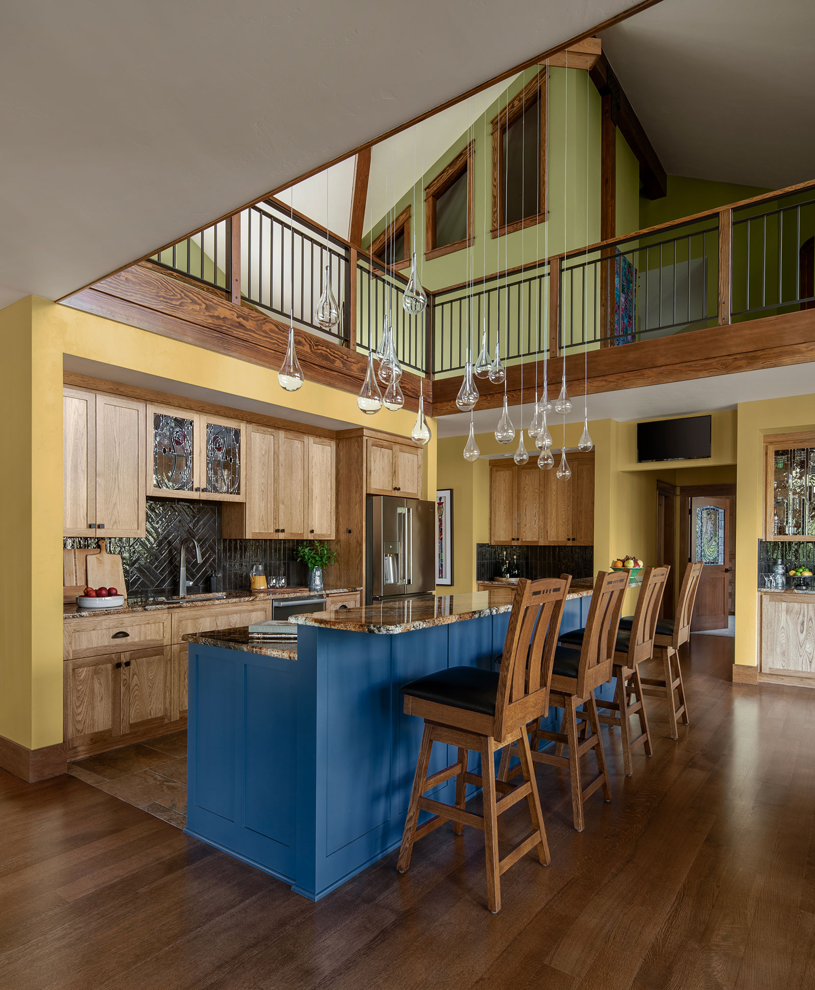 Inside, the homeowners’ artistry shines through—from handcrafted stained glass to bold color palettes and custom finishes. A floating steel staircase, exposed beams, and heart hickory cabinetry blend structural sophistication with warmth. The result is more than a house: it is a legacy of craftsmanship, creativity, and connection for generations to come.