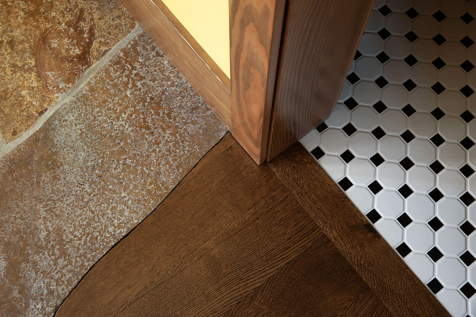 The design is rooted in the concept of three intersecting diamonds, with the central gathering spaces at the core, private bedrooms and baths at one end, and creative studios at the other. The home’s placement on the land demanded advanced engineering, including steel piles and a hybrid wood-and-steel framing system. Natural light and vertical lines were central to the vision, with custom wood windows framing expansive views and illuminating soaring ceilings.